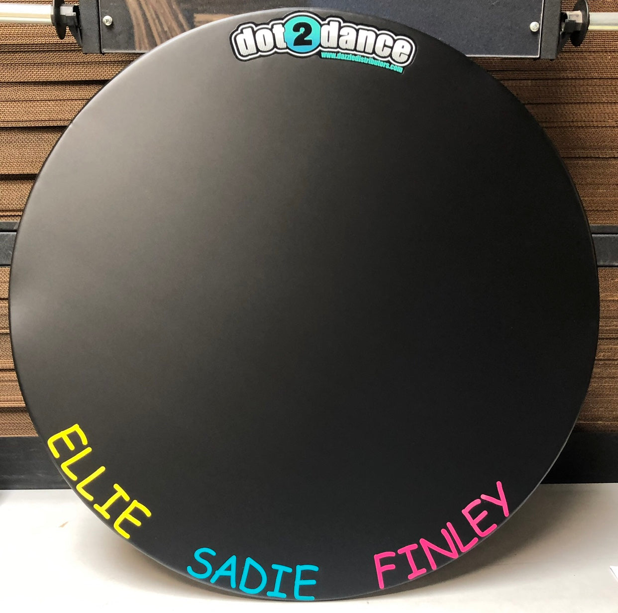 ALREADY have a dot2dance®️ with NO Personalization? Well that's no fun! You have reached the correct spot to order just your NAME DECAL ONLY to PERSONALIZE the World's SAFE SPOT on an Authentic Marley DOT, dot2dance Portable Dance Floor.